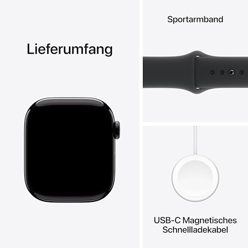 Apple Watch Series 10 (GPS 42 mm) Smartwatch mit Aluminiumgehäuse in Diamantschwarz und Sportarmband in Schwarz (S/M). Fitnesstracker, EKG App, Always-On Retina Display, Wasserschutz