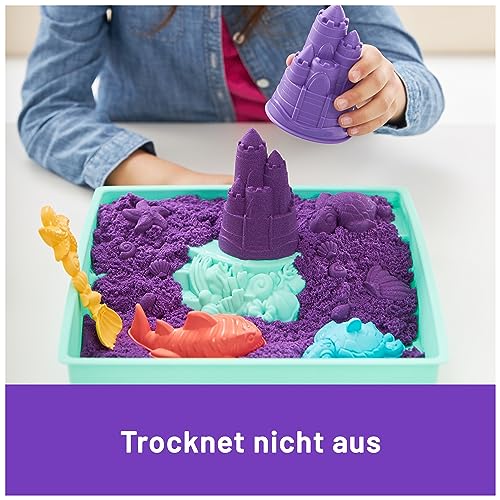 Kinetic Sand Sandbox Set Lila - mit 454 g original magischem kinetischem Sand aus Schweden, 1 Box, 3 Förmchen, 1 Schaufel für kreatives Indoor-Sandspiel, ab 3 Jahren