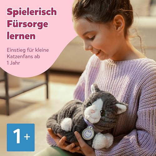 NIEDLICHE KATZENLAUTE - Kätzchen Cookie begeistert mit authentischen Katzengeräuschen: Miauen, Schnurren und sanftes Vibrieren.