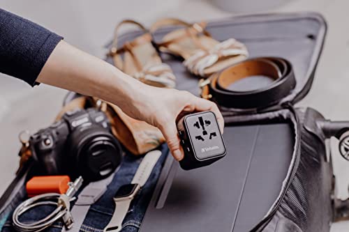 Verbatim Universal Reiseadapter UTA‑02, Steckdosenadapter mit USB‑A, USB-C Anschluss, Reisestecker für Laptop, Handy, Kamera und Co, weltweit einsetzbar, 100-250V [Kein Verkauf/Versand in die Schweiz]